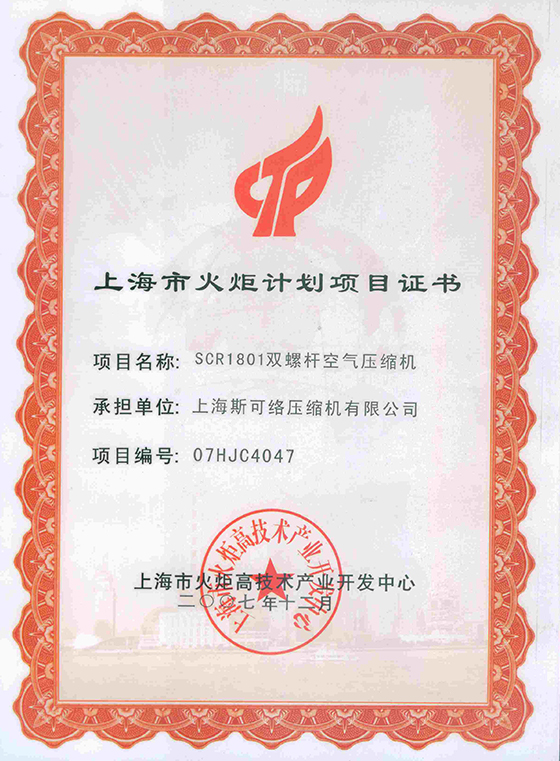 上海市火炬计划项目证书